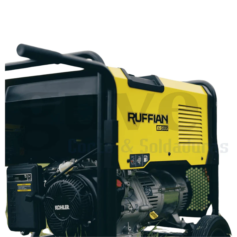 La motosoldadora ESAB RUFFIAN 150 es un equipo multifuncional que combina una soldadora de 150 amperios con un potente generador de gasolina. Diseñada para un rendimiento robusto, es ideal para trabajos que requieren tanto soldadura como generación de corriente alterna (CA).