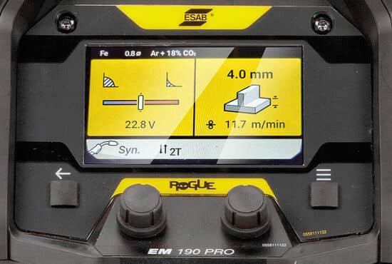 The ESAB Rogue EM 190 PRO is an inverter-based MIG/MAG welding system designed for all your welding needs, from light fabrication to repair and maintenance. This machine provides industrial-grade arc performance and comprehensive controls, allowing the welder to fine-tune arc characteristics based on the material being welded. Weighing only 16.9 kg, with a single 230V single-phase input and compatibility with 11 kVA generators, this system offers maximum flexibility and portability, both in the shop and in the field.